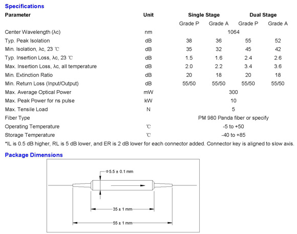 Home / Products / Fiber Optical Components / 1064 nm Products / PM Isolator for Pulse Application