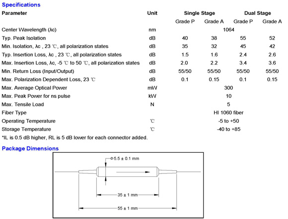 Home / Products / Fiber Optical Components / 1064 nm Products / Polarization Insensitive Isolator