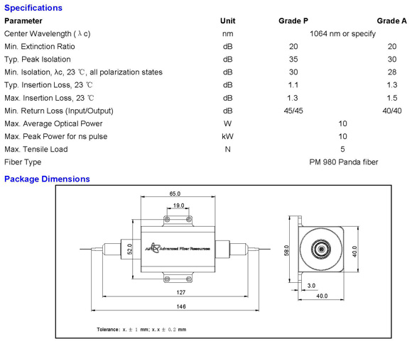 Home / Products / Fiber Optical Components / High Power Products / 10 W PM Isolator for Pulse Application