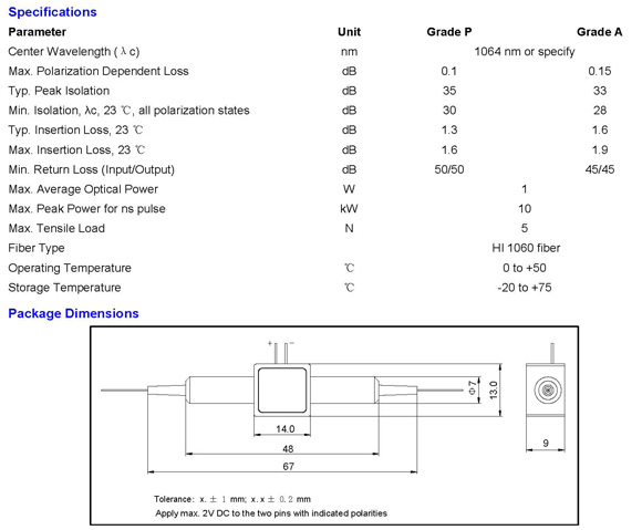 Home / Products / Fiber Optical Components / High Power Products / 1 W Isolator for Pulse Application