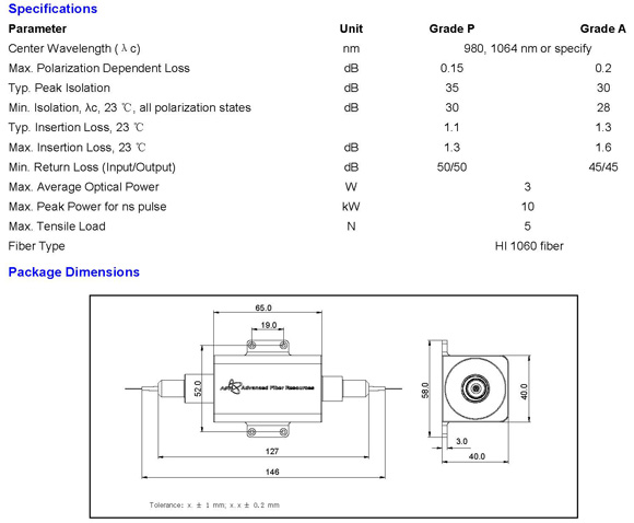 The High Power Polarization Insensitive Isolator is characterized with low insertion loss, high isolation, high power handling, high return loss, excellent environmental stability and reliability. It is ideal for fiber laser and instrumentation applications.