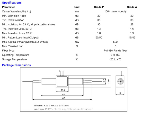 The 1064 nm High Power Polarization Maintaining Isolator is characterized with low insertion loss, high isolation, high power handling, high return loss, excellent environmental stability and reliability. It is ideal for fiber laser and instrumentation applications.