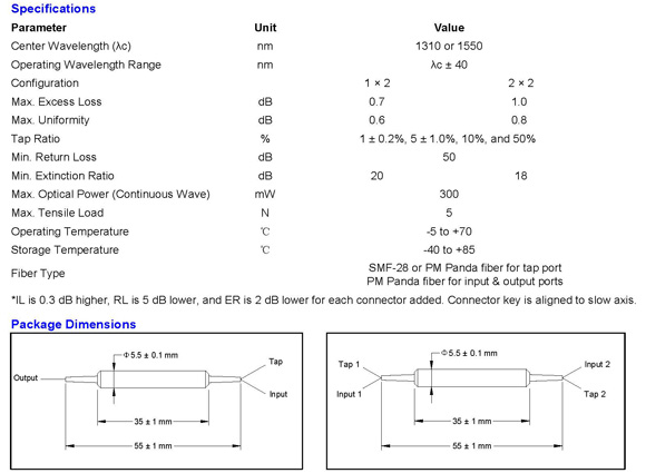 The PMFC series is manufactured by using advanced technology to allow the input signal to be splitted at various ratios with high extinction ratio. It supports both polarizations.